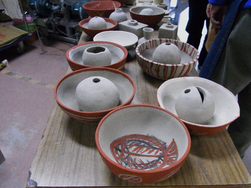 授業の作品を今日は素焼き。