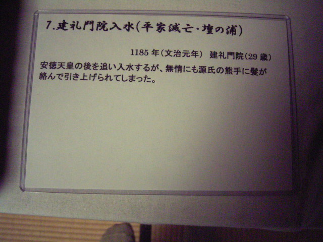 | (写真、文は長楽寺ホームページから) 当寺で出家された建礼門院は、時に御歳29歳。そのときの御影が当寺に保存されている。当時、敵軍に捕われた建礼門院は、約1ヵ月後に京に帰還したが源氏方の目は厳しく、この御影も源氏方の目を逃れる為、当時は表面を墨で覆い隠し祭られていたと伝えられる。建礼門院の御影の古いものはほかに類をみず、貴重な資料とされている。 |