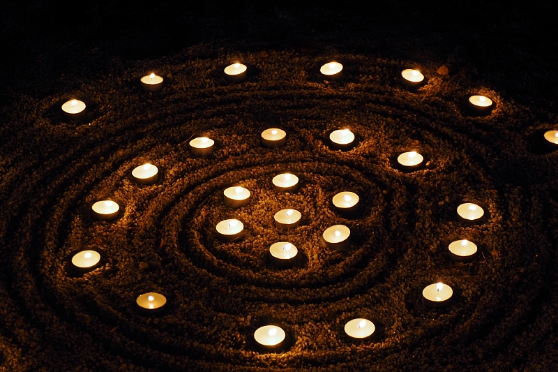 あちこちで披露される竹灯篭