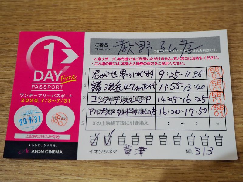 | 新型コロナウィルスはまだまだ収束の気配は無い。自粛を解除してから、ますます感染者は増えている。もう数ヶ月映画館に入っていない。一時は完全閉鎖していた映画館も、マスク着用の義務、入館時の体温チェック、客席の間隔を空ける、館内の空気を常時流すなどの対策でなんとか営業している。映画そのものの制作のいきおいも落ちているのか、かける映画も少なくなって、過去の映画を多くかけるようになった。 ワンデイフリーパスポートは1回分の料金で1日観放題チケットで、本日がキャンペーン最終日。もっと早く気が付くべきだった。 |
