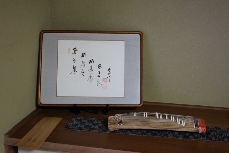 掛軸に軸から抜け出て来た