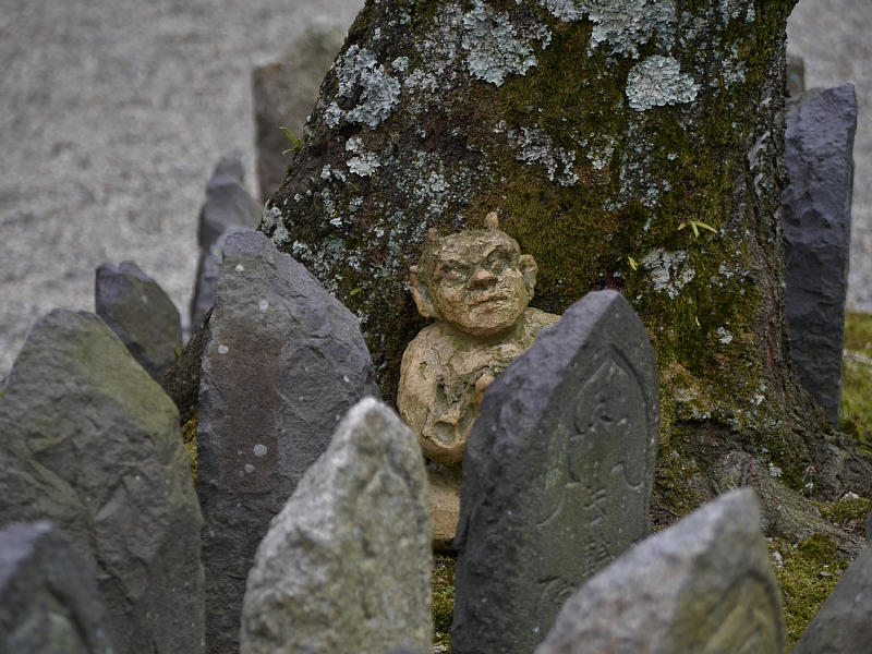 ここに使われている古瓦は上部が細くすぼまり、下部が幅広い独特の形をしており、この瓦を重ねる葺き方を行基葺(ぎょうきぶき)という。