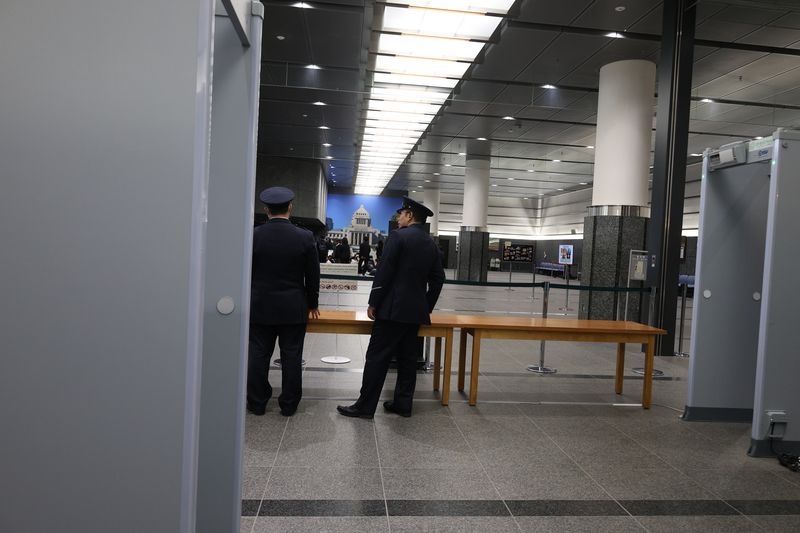 ものものしい警戒と持ち物検査がある