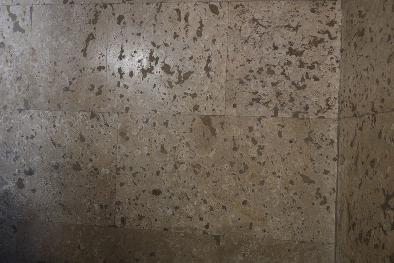 化石が埋まる大理石の壁