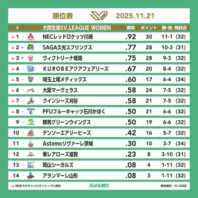 現在SAGA久光スプリングスは日本第2位、東レアローズ滋賀は日本第12位