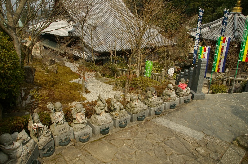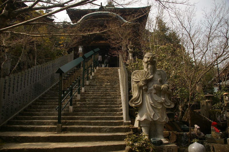 | 宮島にある寺院の中で最も歴史が古いのが、真言宗御室派(総本山仁和寺)の大本山大聖院です。 空海が宮島に渡り、弥山の上で修行をして開基したのが806年といいますから、歴史の重みを感じない訳にはいきません。 皇室との関係も深く、古くは鳥羽天皇勅命の祈願道場として、近くは明治天皇行幸の際の宿泊先になるなど、格式の高いお寺といえます。 |
